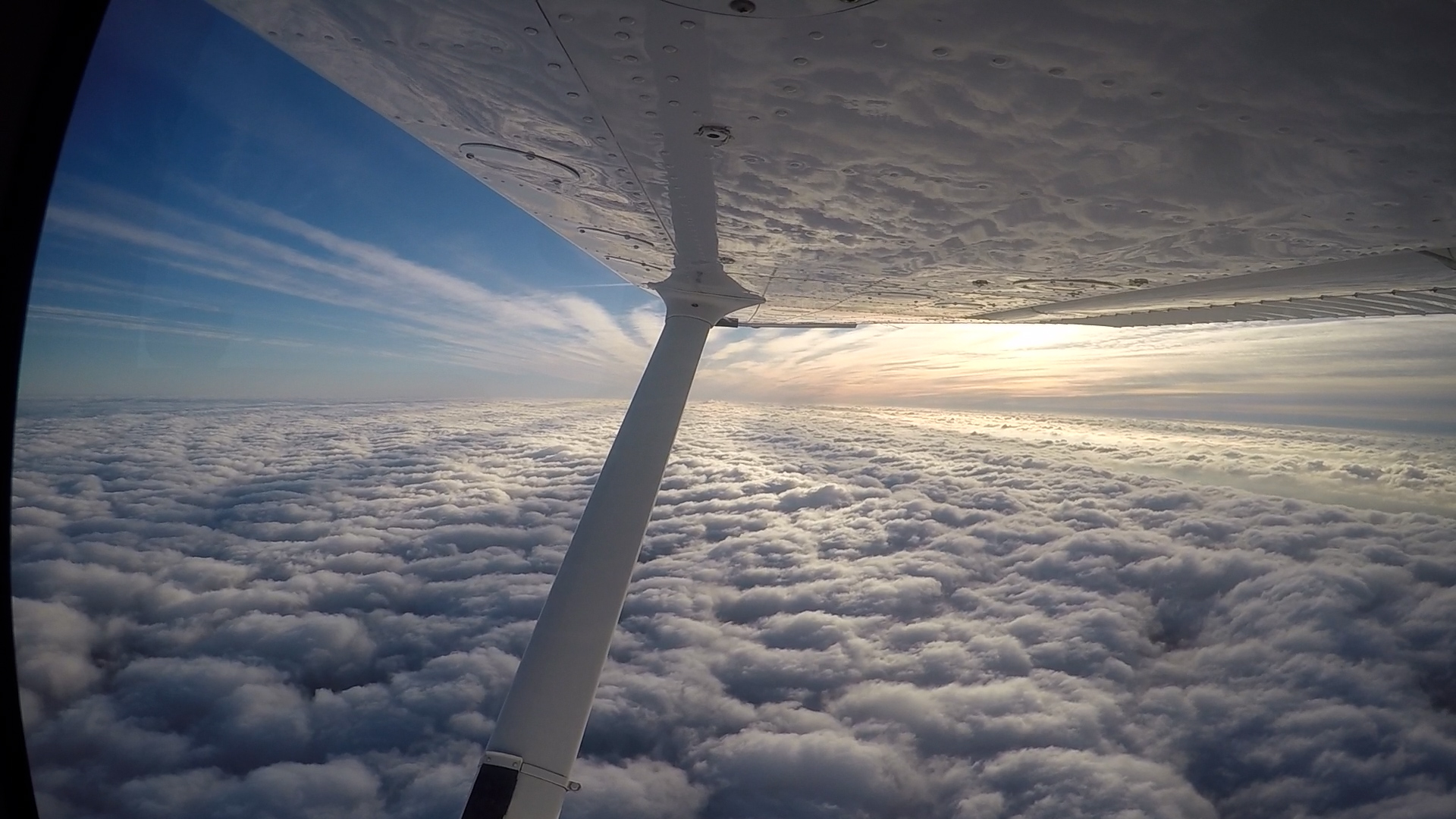 Boven de wolken op FL060 in de ochtendzon